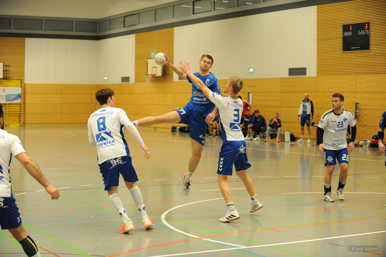 Schon zu Beginn des Spieles zeigte sich schnell in welche Richtung dieses Spiel gehen wird. Die Gäste aus Heidingsfeld zeigten, wieso Sie noch Ansprüche auf den diesjährigen Aufstiegsplatz haben. Angeführt vom erfahrenen und starken Spielmacher Julius Weinhardt und dem blitzschnellen Linksaußen Frid Wisso nutzen Sie, die wieder einmal auffällig vielen Fehler des MHVs durch schnelle Tempogegenstöße aus. Wie schon in der vergangenen Woche in Volkach, fand das Team um Christopher Früh in der 1. Halbzeit überhaupt nicht in Ihr gewohntes Spiel. Dementsprechend ging es mit einem deutlichen 13:23 Rückstand in die Halbzeit.