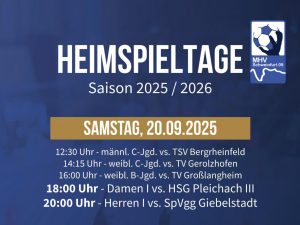 Saisonauftakt beim MHV Schweinfurt – Fünf Heimspiele am Samstag, Topspiel der Männer gegen Giebelstadt
